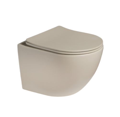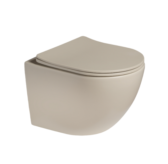 Унитаз подвесной SantiLine SL-5005T-BG бежевый матовый с сиденьем микролифт безободковый смыв торнадо