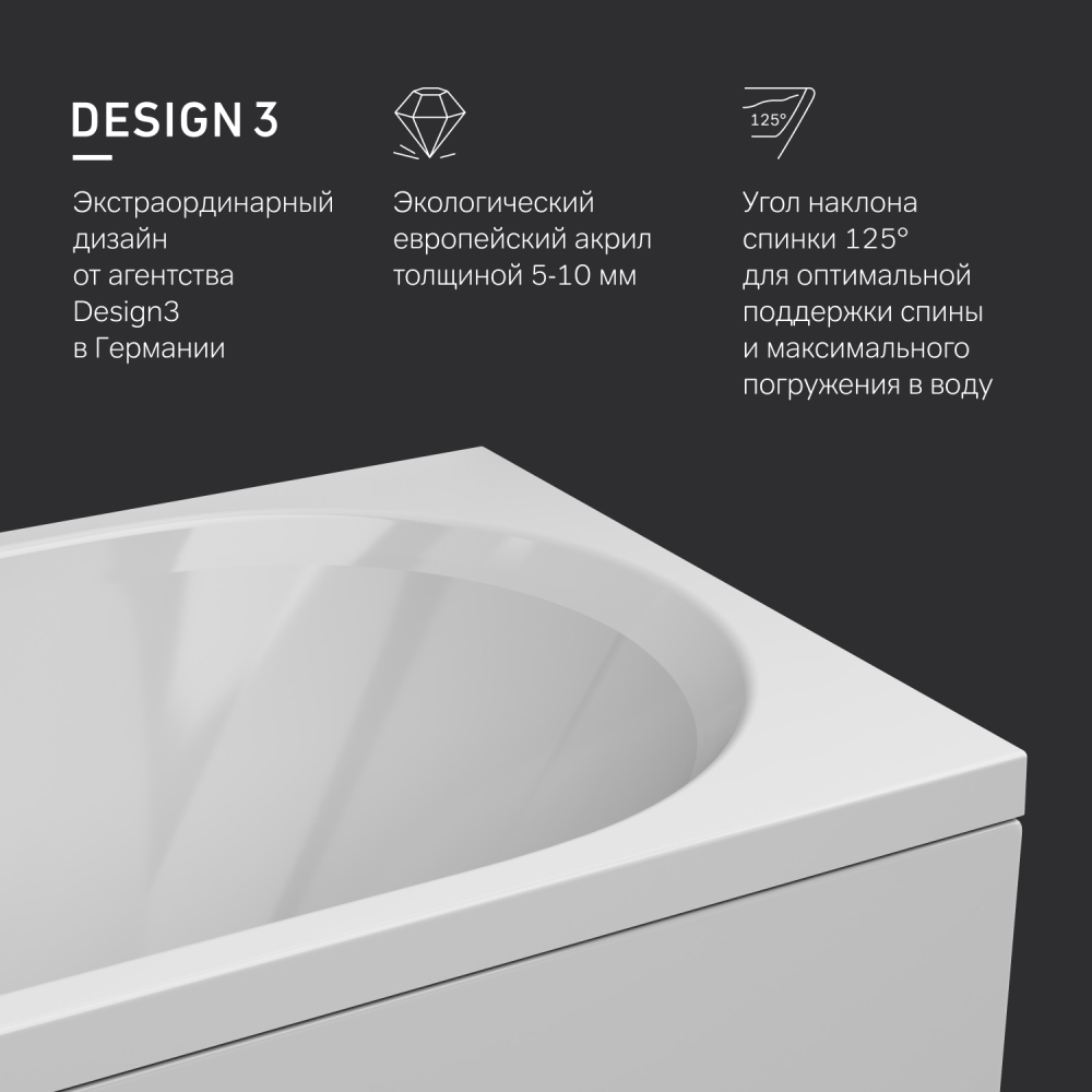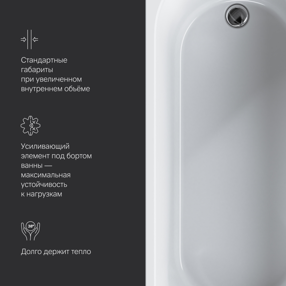 Компактная проекция 170х70 см позволяет вписать ванную даже в небольшое помещение. А универсальный дизайн подойдет как для современного так и для классического интерьера.