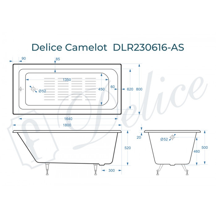 Delice Camelot серия Elite в размере 180х80 см производится с ручками, без ручек, с антискользящим покрытием и с гладким дном.