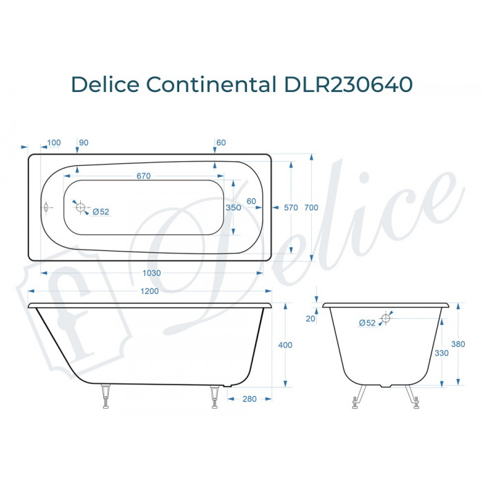 Delice Continental серия Elite в размере 120х70 см производится с ручками, без ручек, с антискользящим покрытием и с гладким дном.
