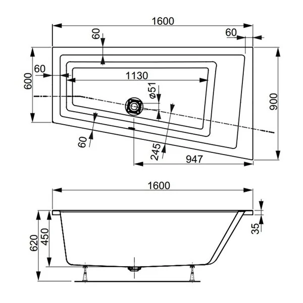 —Ванна акриловая Vagnerplast Cavallo VPBA169CAV3PX-04 160х90 пристенная асимметричная без каркаса
