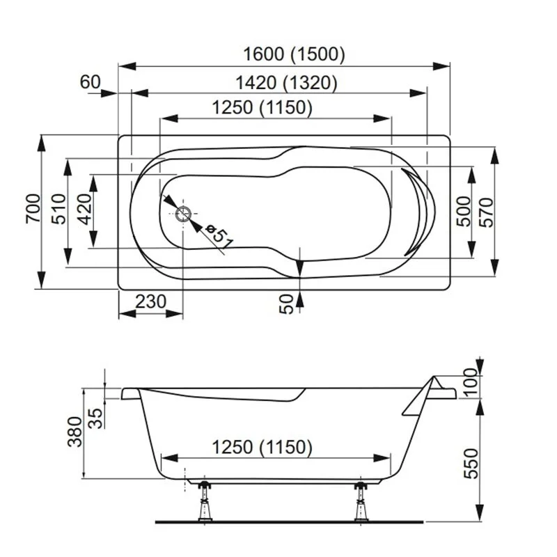 Ванна акриловая Vagnerplast Nymfa VPBA157NYM2E-04 150х70 пристенная прямоугольная без каркаса